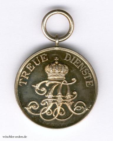 Großherzog Paul Friedrich August I. hatte bereits am 24. Dezember 1847 eine dreiklassige Dienstauszeichnung für Militärpersonen unterhalb des Offiziersranges in Form von Schnallen gestiftet, die nach Abschluss der oldenburgisch-preußischen Militärkonvention 1867 jedoch nur noch an Gendarmerie und Landdragoner verliehen wurde. Nach preußischem Vorbild führte Großherzog Friedrich August mit Verfügung vom 7. August 1913 an deren Stelle Medaillen für neun und zwölf sowie ein kupfernes Kreuz für fünfzehn Dienstjahre ein. Geliefert wurden hiervon jeweils 50 Exemplare, die überwiegend nicht verliehen wurden. Eine Medaille wurde an das Bomann-Museum in Celle gegeben. Über den Verbleib der restlichen 26 Exemplare ist zwar nichts bekannt, das gelegentliche Auftauchen loser, ungetragener Exemplare spricht aber dafür, dass diese „überlebt“ haben.