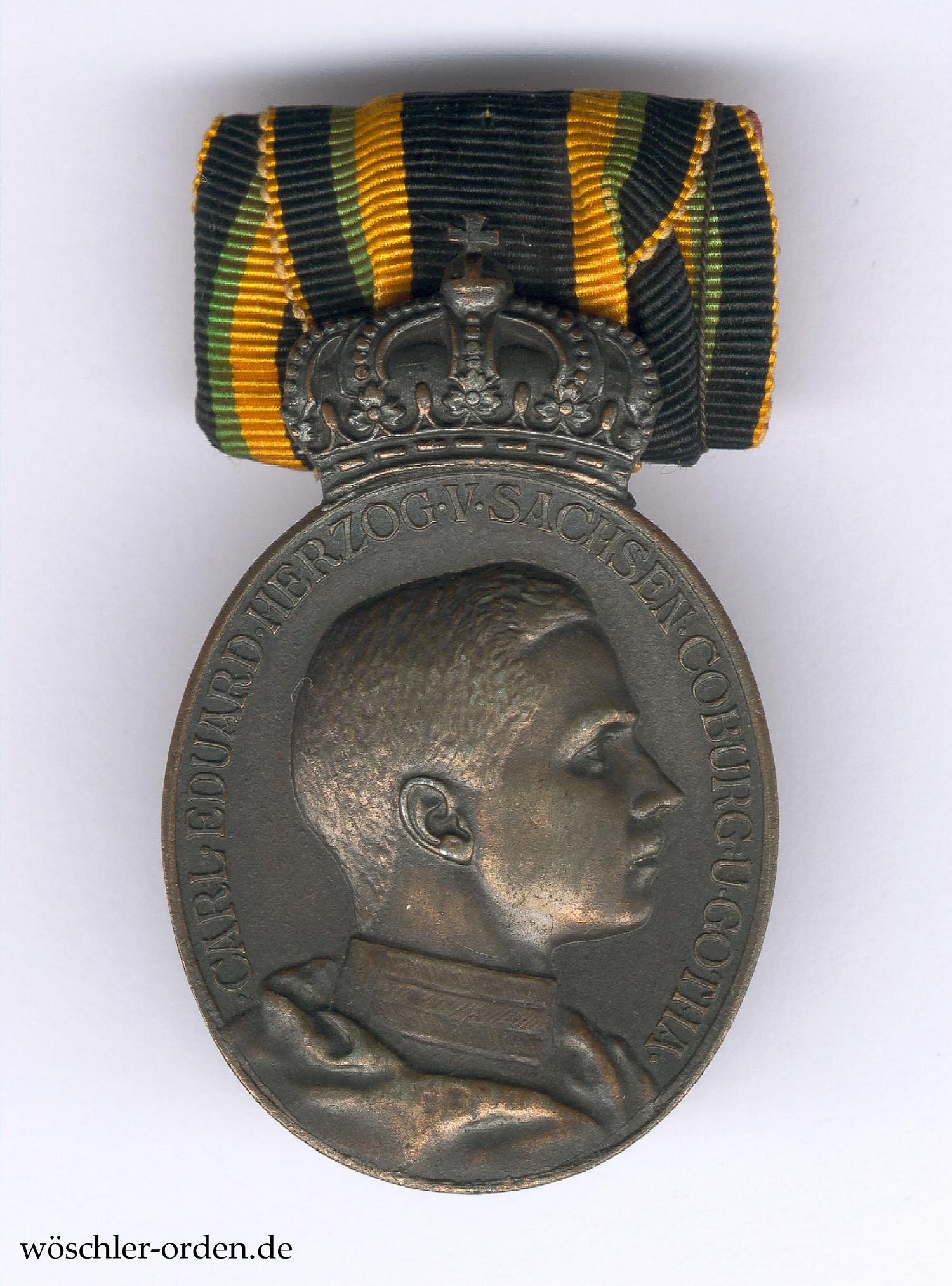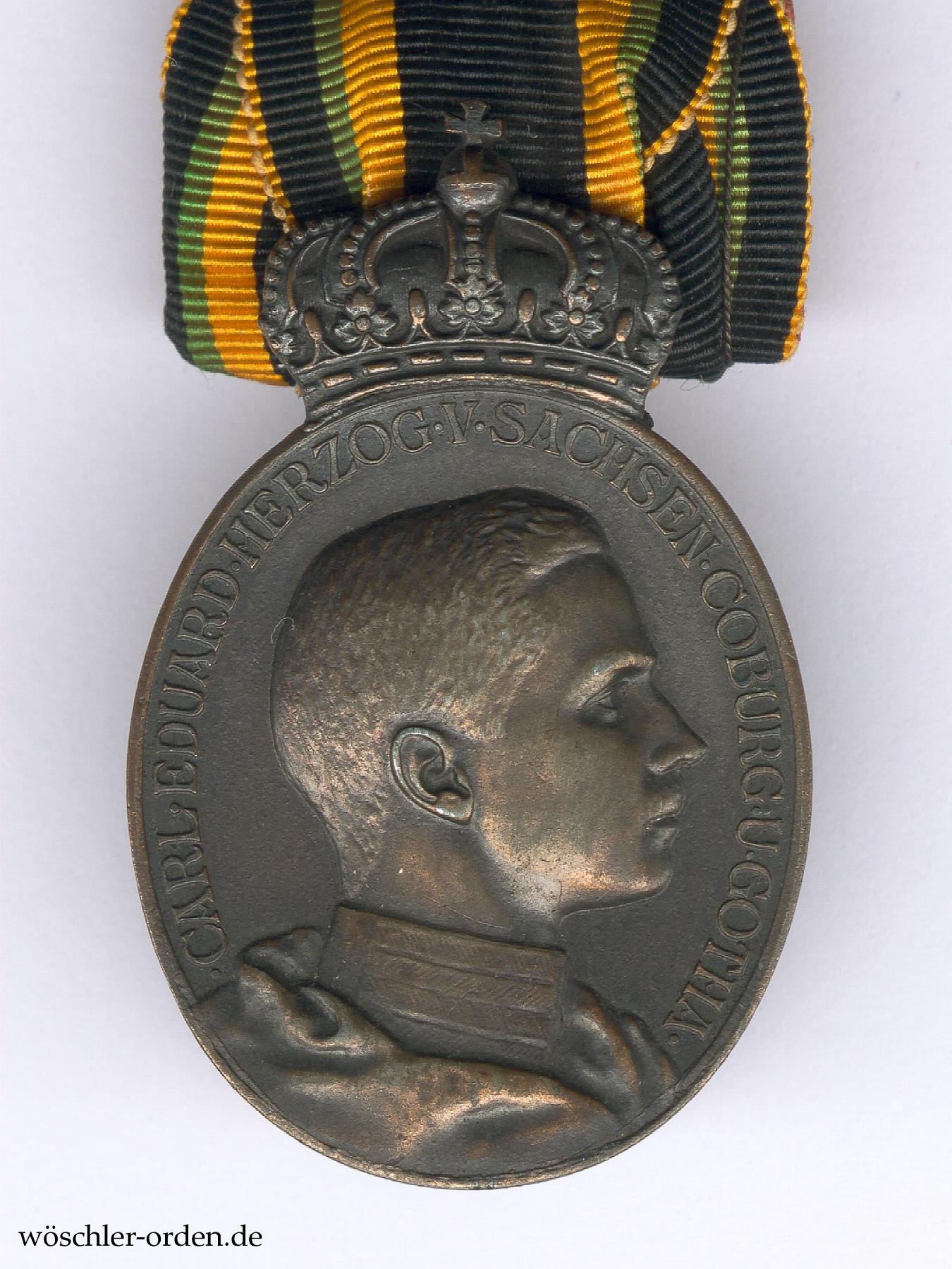 Das Ehrenzeichen für Heimatverdienst wurde durch Herzog Carl Eduard am 19. Juli 1918 „für Personen ohne Unterschied des Geschlechtes, Ranges und Standes im Herzogtum, die während des Krieges mittelbar oder unmittelbar im Interesse der Kriegsführung und in der Förderung gemeinnütziger Bestrebungen Hervorragendes geleistet haben“ gestiftet. Bei Lauer in Nürnberg sollen 5000 Medaillen bestellt worden sein, von denen bis Kriegsende jedoch nur ungefähr 3000 Exemplare angefertigt wurden. Nimmergut gibt 1226 Verleihungen, davon 809 in Sachsen-Gotha und 417 in Sachsen-Coburg, sowie 5 Nachverleihungen am 21. Juli 1919 an.
