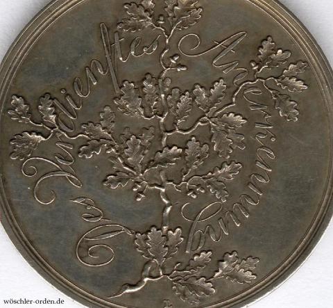 Exemplar der ersten Ausgabe, von der im Jahre 1816 durch den „Kgl. Preuß. Hof-Medailleur“ Daniel Friedrich Loos zu Berlin insgesamt 300 Exemplare angefertigt wurden. Silber geprägt, an parallel angelöteter Öse. Dieser Bestand war für Verleihungen bis 1902(!) ausreichend.