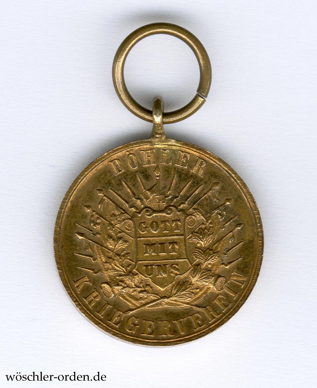 Deutsches Reich, Böhler Kriegerverein, Portraitmedaille Wilhelm I. mit Umschrift „WILHELM I. KAISER VON DEUTSCHLAND“, rückseitig Kartusche „Gott mit uns“ und Zweckinschrift des Böhler Kriegervereins.