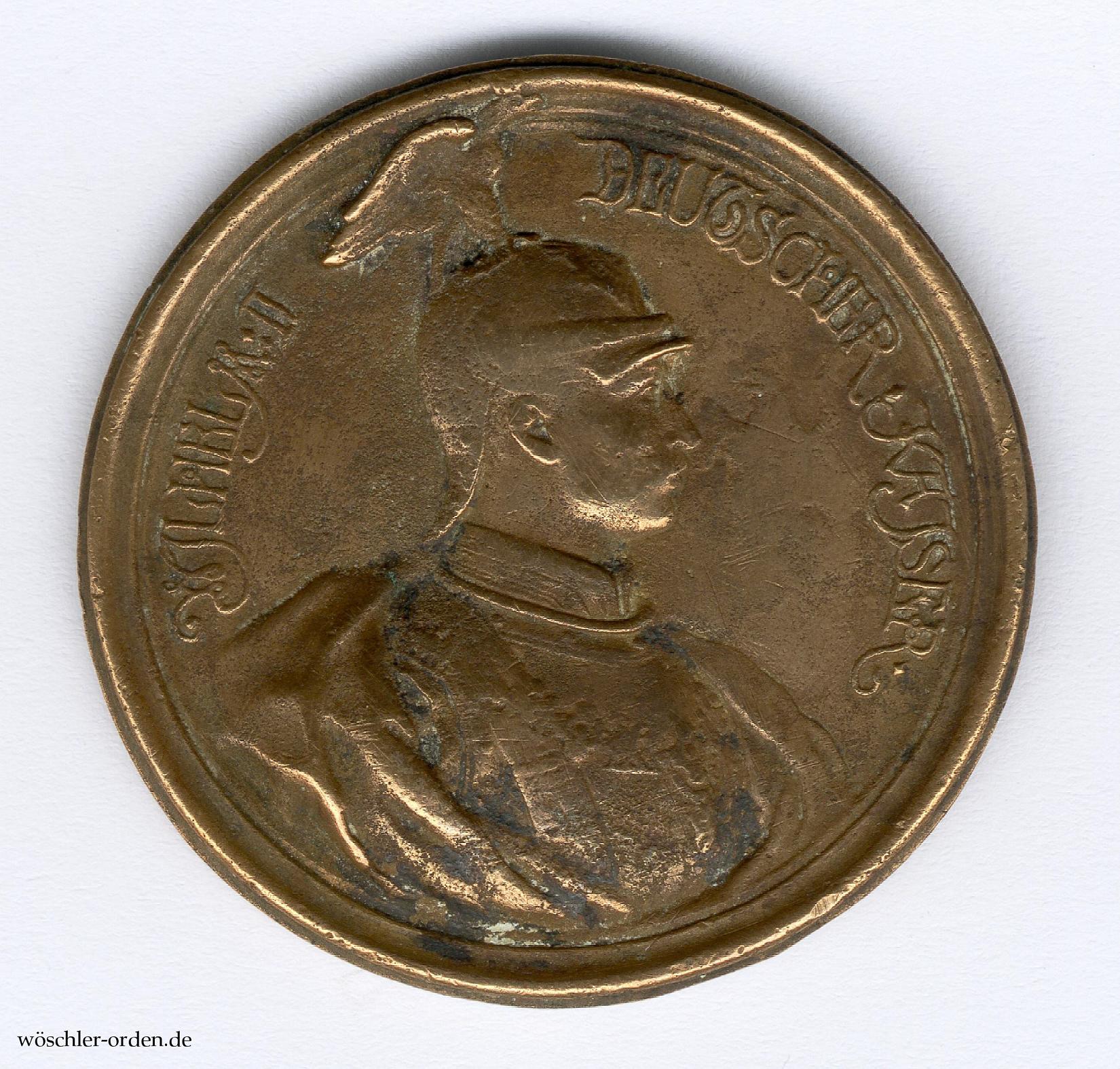 Bronze, etwa 48,4 mm, gegossen und patiniert. Vorderseitig das Brustbild Kaiser Wilhelm II. nach rechts, in der Uniform der Garde du Corps, mit Paradehelm und Kürass. Rückseitig unter dem symbolischen Stern von Bethlehem die personifizierte Religio mit Buch, etwas im Hintergrund die Wittenberger Schlosskirche.