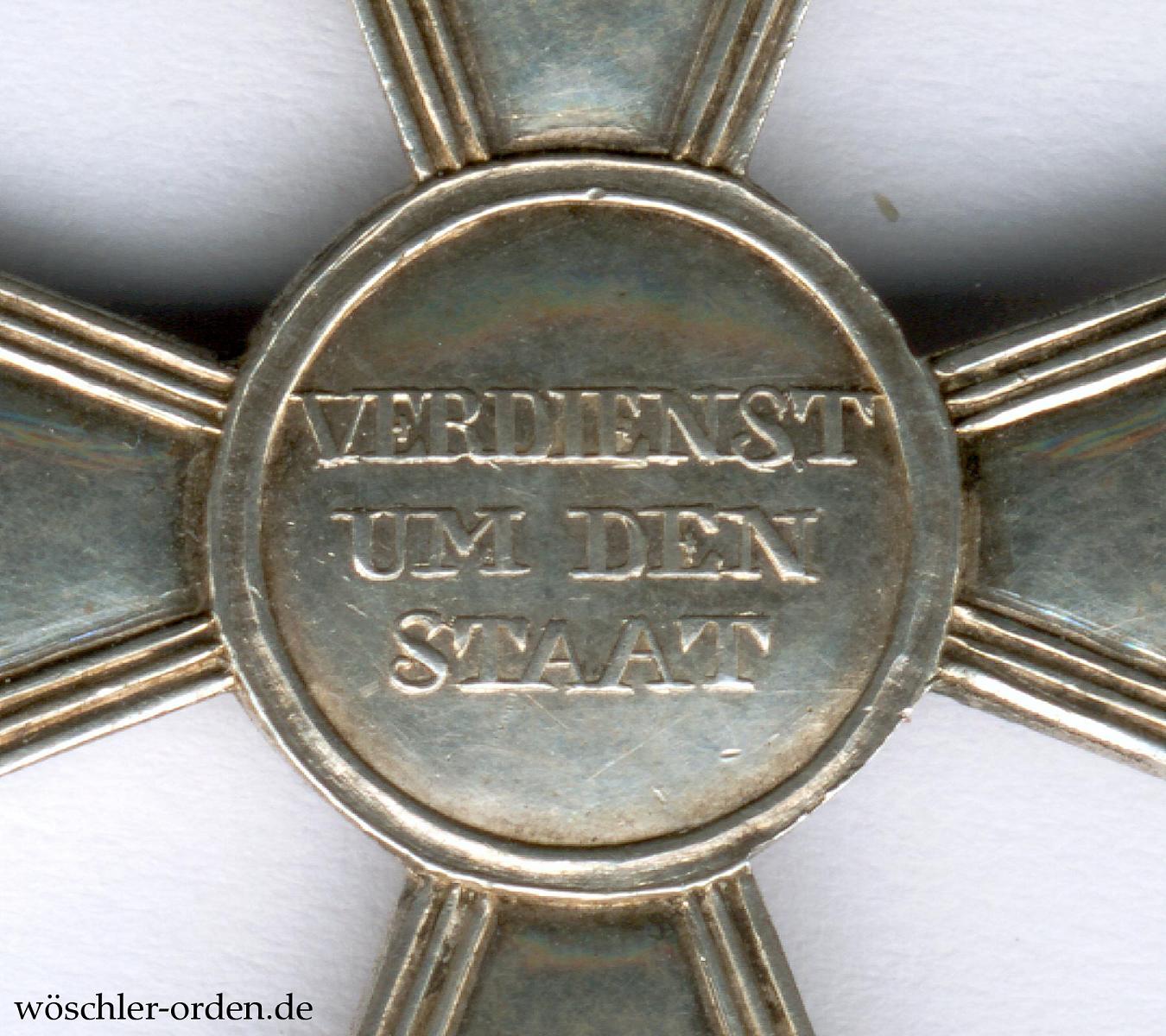 Literatur: Bannicke-Tewes, Elke und Tewes, Lothar: 200 Jahre preußische Ehrenzeichen „Verdienst um den Staat“. Teil I: 1793–1847. In: money trend. Internationales Münzenmagazin. Nummer 4/93 vom April 1993. S. 8–20.