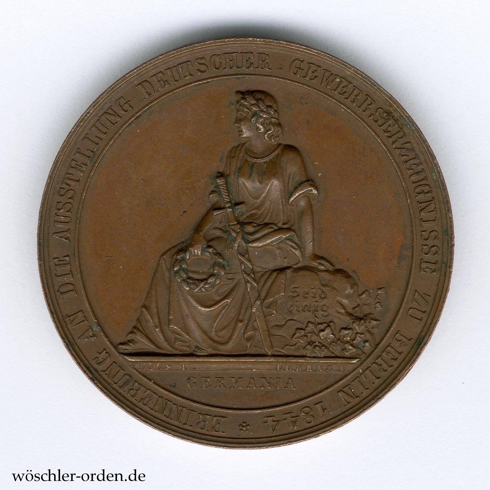 Preußen, Berlin, Bronzemedaille auf die Gewerbeausstellung 1844, von H. Lorenz und E. Schilling bei Loos, Durchmesser etwa 45 mm.