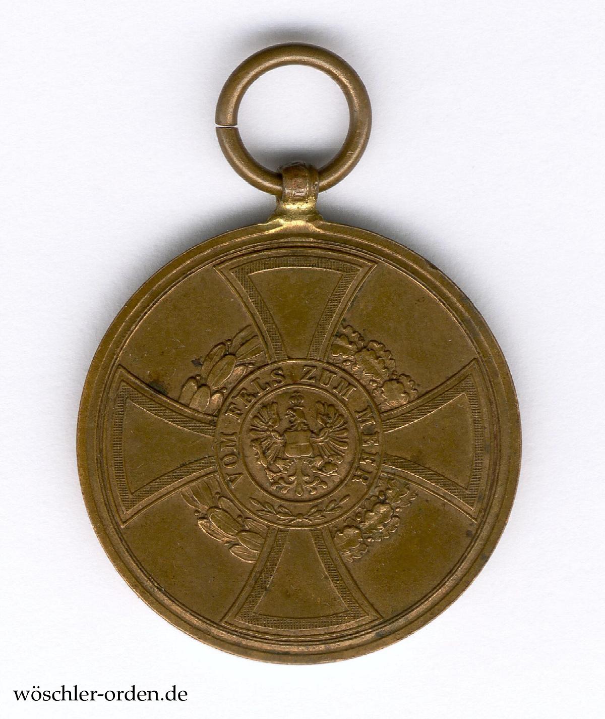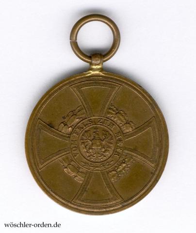 Bronze geprägt, an angelöteter, für die preußischen Kriegsdenkmünzen typischen gerillten Ringöse mit offenem Bandring.