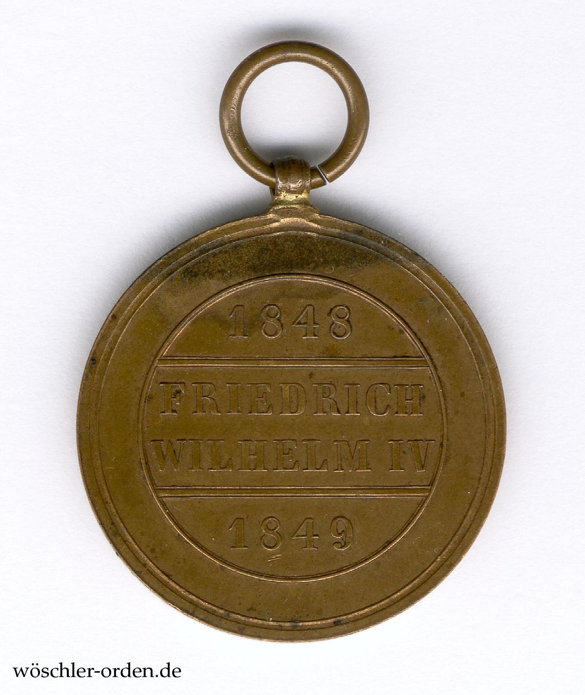 Die Hohenzollernsche Denkmünze 1848/1849 wurde am 23. August 1851 durch König Friedrich Wilhelm IV. als dem Königlichen Hausorden von Hohenzollern angegliederte, nur einmalig zu vergebende Auszeichnung für Offiziere und Soldaten der Armee, welche sich in den während der Jahre 1848 und 1849 vorgefallenen Gefechte gegen die Aufständischem bewährt hatten, gestiftet. Der Umstand, dass eine Kriegsdenkmünze einem allgemeinen Haus- oder Verdienstorden angegliedert wurde, ist ein zumindest für Preußen einmaliger Vorgang.