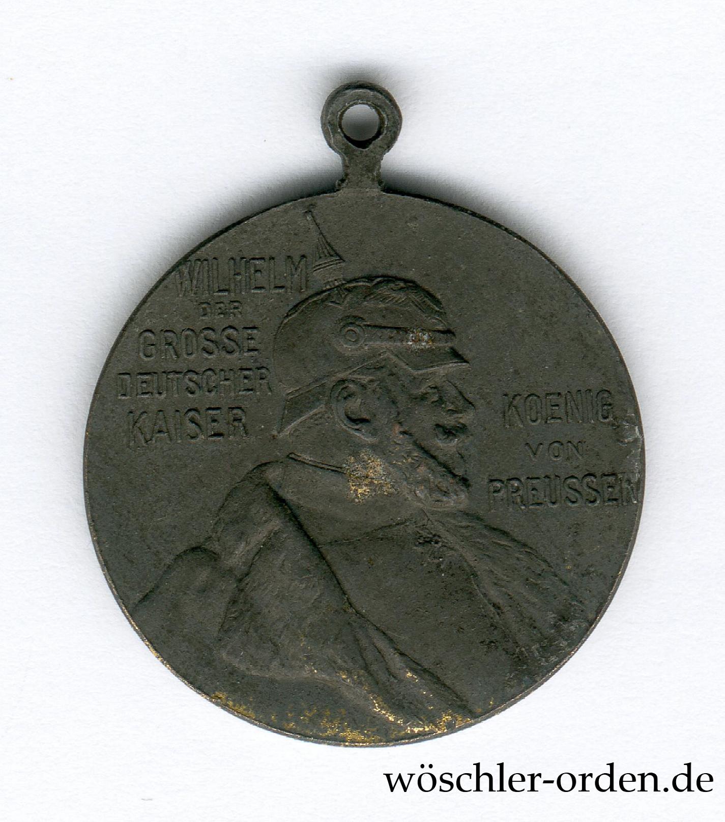 Reduktion, sog. „Prinzengröße“, in Zink-Kriegsmetall. Durchmesser etwa 29 mm, an angeprägter, gelochter Parallelöse. Ohne Band.