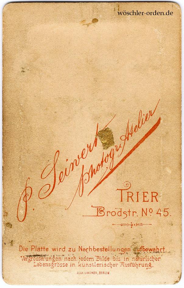 Aufgenommen um 1897 ff. im Photographischen Atelier P. Seiwert, Trier.