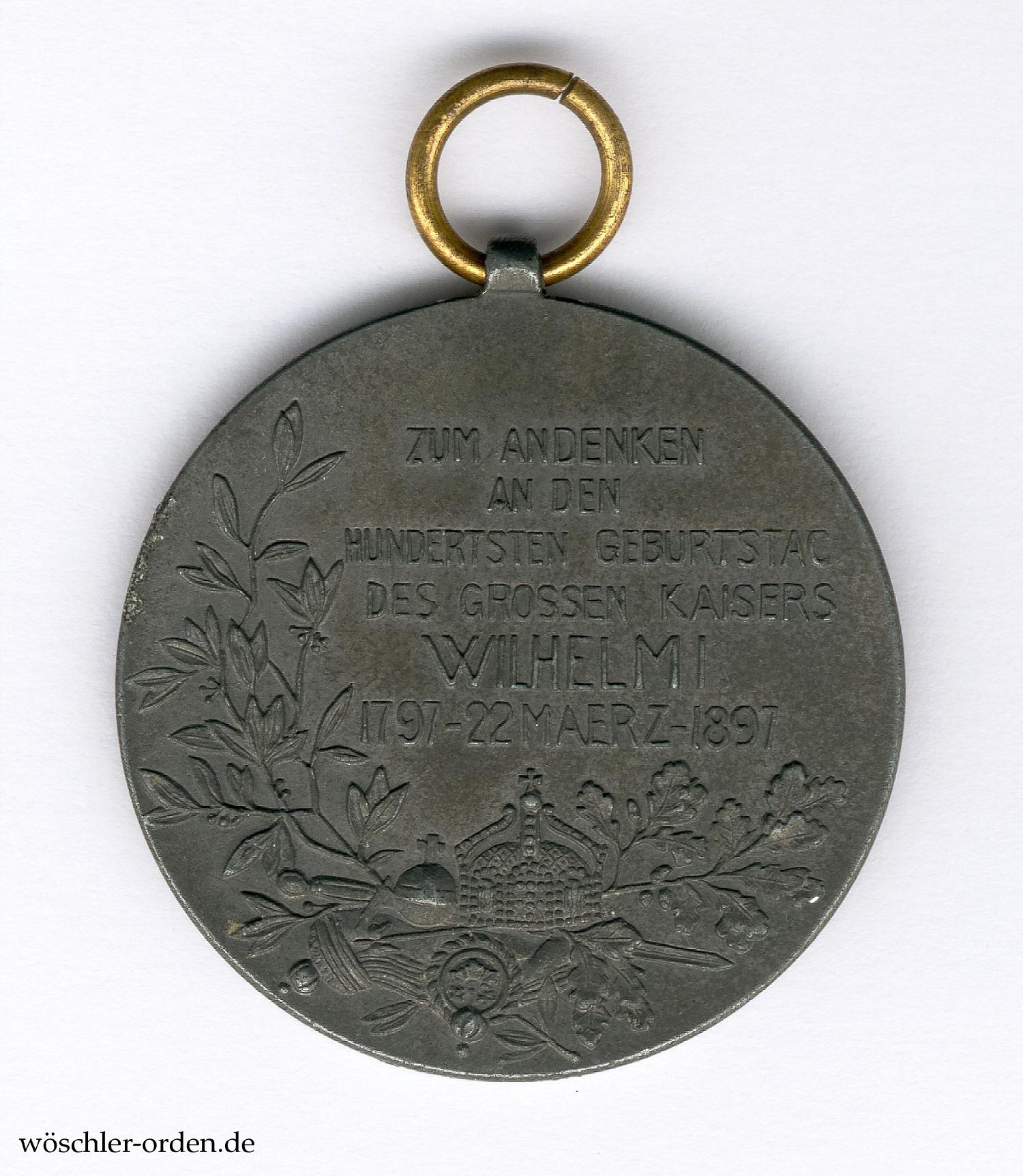 Die Erinnerungsmedaille wurde am 22. März 1897 von König Wilhelm II. zum Andenken an den 100. Geburtstag seines Großvaters, Wilhelm I., für sämtliche Offiziere, Militärbeamte, Unteroffiziere und Soldaten, welche an diesem Tage der aktiven (preußischen!) Armee oder den Reichstruppen angehörten, sowie für die Veteranen der Kriege von 1864, 1866 und 1870/71 gestiftet. Insgesamt wurden über 1,2 Millionen Medaillen verausgabt. Reduktionen waren recht beliebt, da sie mit den kleineren Kriegsdenkmünzen usw. besser im Gesamtbild der Ordensschnalle korrespondierten. Da sie privat zu beschaffen waren, sind sie trotzdem nicht allzu häufig.