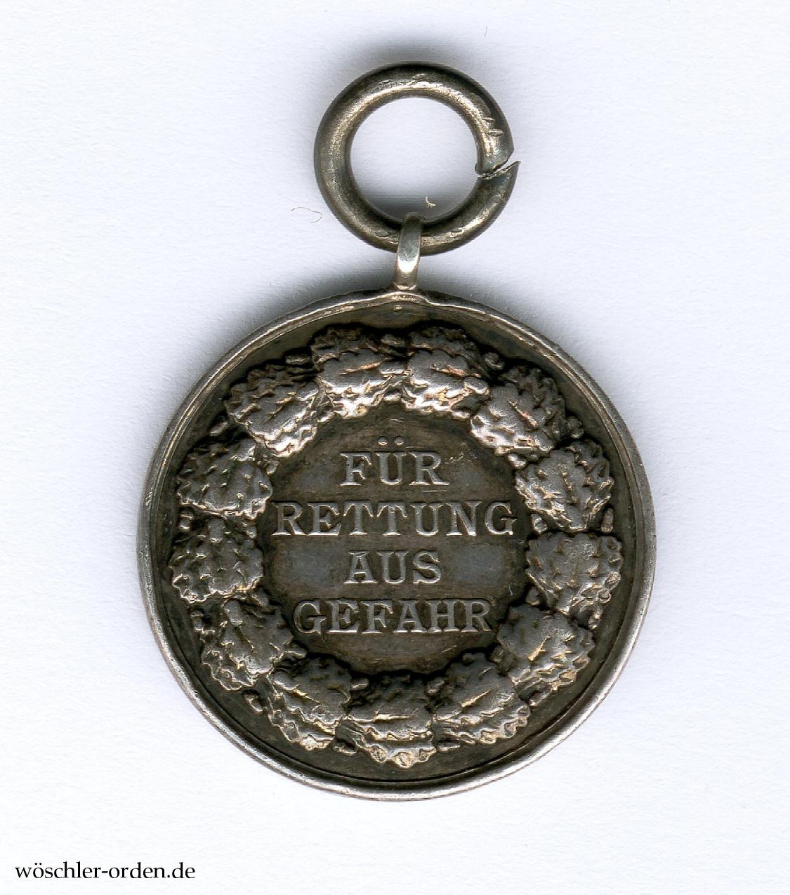 Königreich und Freistaat Preußen, Rettungsmedaille am Bande, verliehen 1833 bis 1918 und 1925 bis 1934, bzw. bis 1837 als „Verdienstehrenzeichen für Rettung aus Gefahr“.