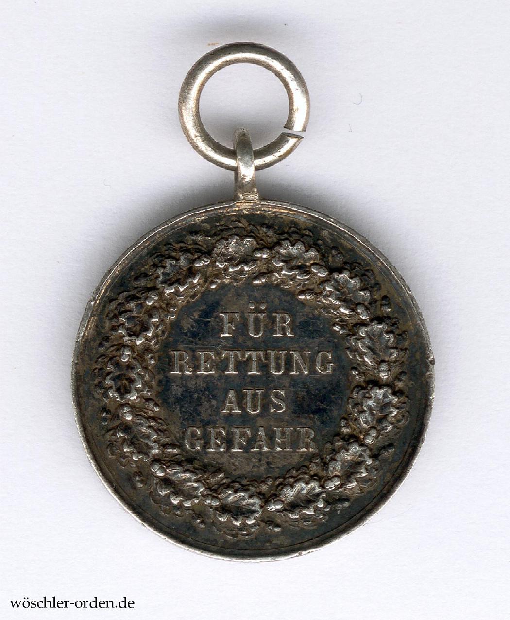 Königreich und Freistaat Preußen, Rettungsmedaille am Bande, verliehen 1833 bis 1918 und 1925 bis 1934, bzw. bis 1837 als „Verdienstehrenzeichen für Rettung aus Gefahr“.