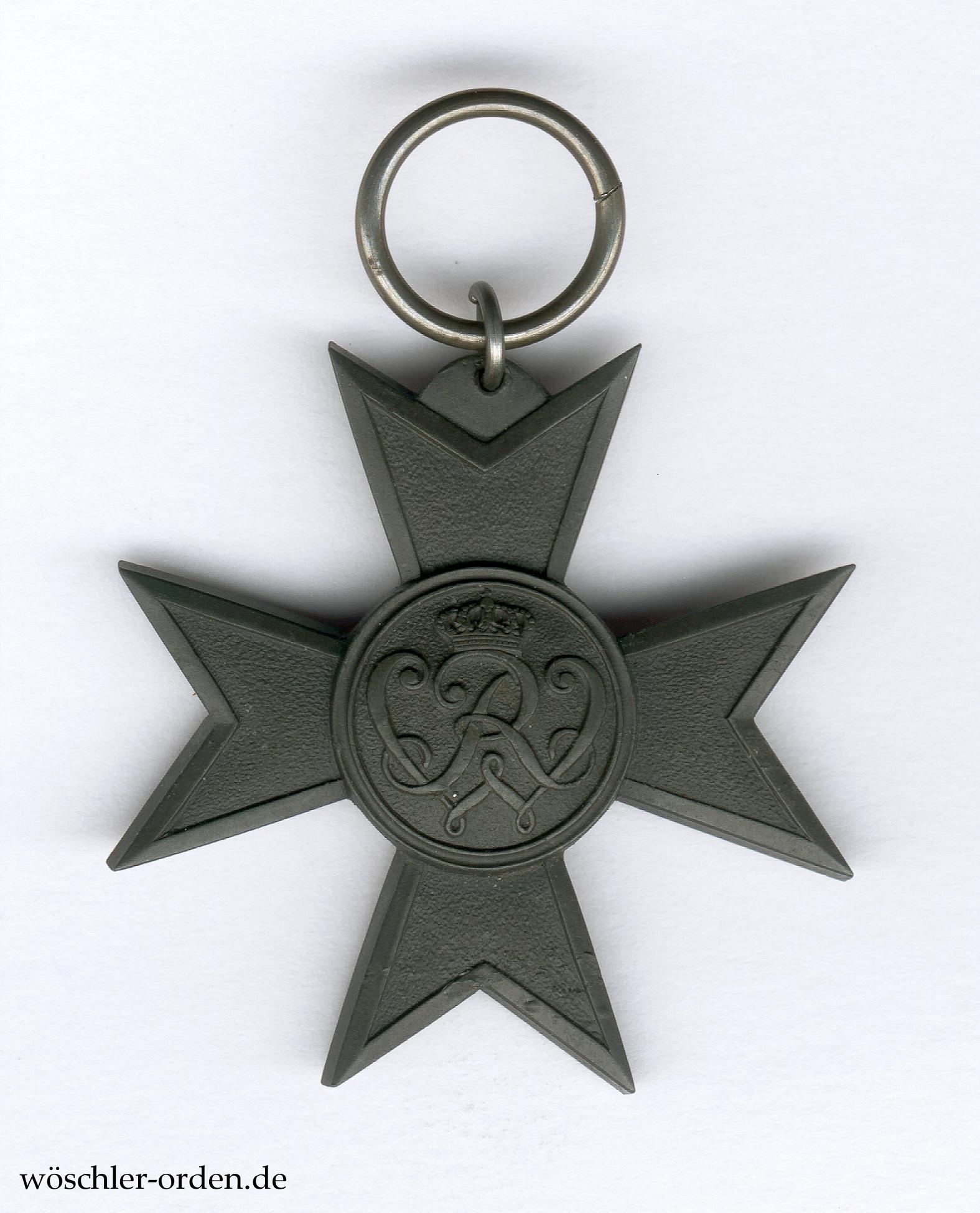 Kriegsmetall geprägt, das kleine Verbindungsringchen und der Bandring aus Eisen. Ohne ersichtliche Herstellerkennzeichnung, somit wohl aus Fertigung des Erst- und Hauptlieferanten L. Chr. Lauer, Berlin, stammend.