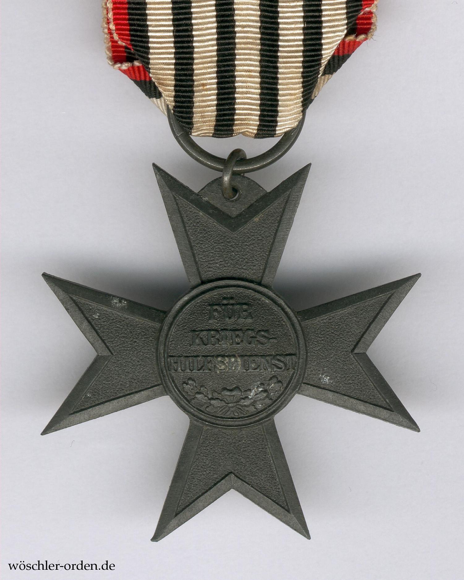 Das Verdienstkreuz für Kriegshilfe wurde am 5. Dezember 1916 durch Wilhelm II. zur Auszeichnung besonderer Verdienste in der vaterländischen Kriegshilfetätigkeit für Personen beiderlei Geschlechts und ohne Unterschied des Ranges oder Standes gestiftet. Wilhelm II. legte das Kreuz selbst an und verlieh es zuerst an seine Gattin Auguste Victoria, an den Generalfeldmarschall von Hindenburg und an den Generalquartiermeister Ludendorff. Insgesamt wurden bis 1920 offiziell 500.000 Exemplare gefertigt, von denen 455.750 verliehen wurden. An Frauen dürften schätzungsweise etwa 10% der Verleihungen gegangen sein.