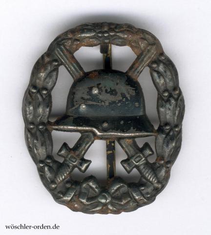 Das „Abzeichen für Verwundete“ wurde am 3. März 1918 durch König Wilhelm II. als besondere Anerkennung für Soldaten gestiftet, die „für das Vaterland geblutet haben oder im Kriegsgebiet durch feindliche Einwirkung ihre Gesundheit verloren haben“. Mit Erlass vom 11. März wurde es für die bayerische Armee übernommen, durch AKO vom 8. Juli auf die Kolonialtruppen erweitert. Für Württemberg und Sachsen erfolgte die Übernahme formlos. Ursprünglich wurde es in schwarz bei ein- und zweimaliger, in mattweiß bei drei- und viermaliger sowie in mattgelb bei zumindest fünfmaliger Verwundung verliehen. Seit 30. Januar 1936 zählte nicht mehr nur die Anzahl, sondern auch die Schwere der Verwundung, womit das mattweiße und das mattgelbe Abzeichen auch bei weniger, aber dafür umso schwereren Verwundungen verliehen werden konnte. Bei Abzeichen, die „durchbrochen“ gearbeitet sind, handelt es sich grundsätzlich um auf private Kosten beschaffte Exemplare.