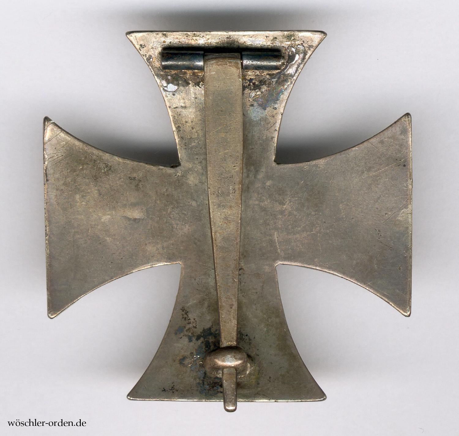 Frühe, wohl noch aus dem Verleihungszeitraum stammende nichtprobemäßige Zweitfertigung in gewölbter Ausführung. Geschwärzter Gusseisenkern des sog. „Typs B“ in Silberzarge, rückseitig eine breite, flache, sich nach unten hin verjüngende Scharniernadel.
