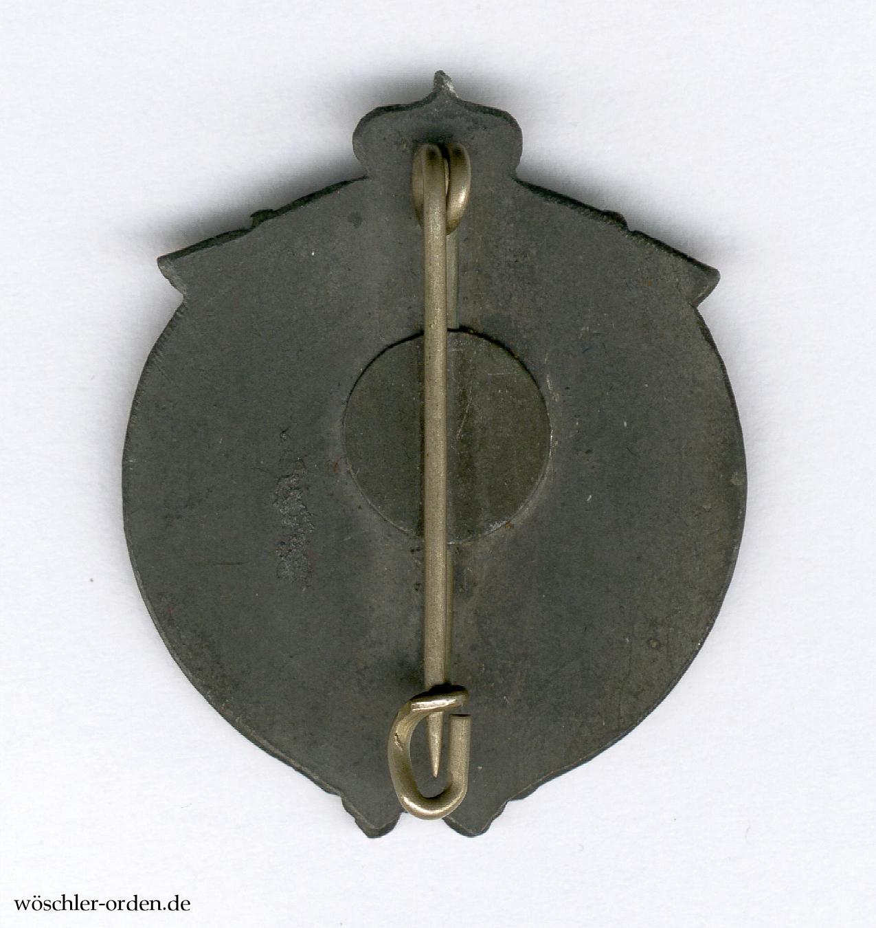 Exemplar der zweiten, ab Herbst 1916 in Ersatzmaterial gefertigten Ausgabe. Zinklegierung massiv geprägt und dunkel getönt, rückseitig broschierte Weißmetallnadel. Ohne ersichtliche Herstellerkennzeichnung, stammen diese Exemplare ausweislich einer dokumentierten Verpackung wohl aus Fertigung der Medaillen-Münze Lauer, Berlin S. W. 68.