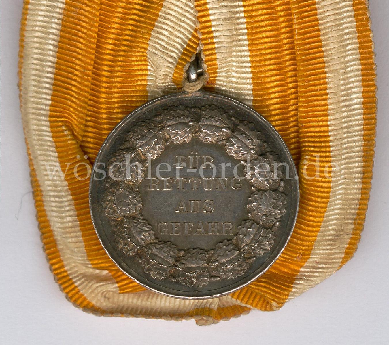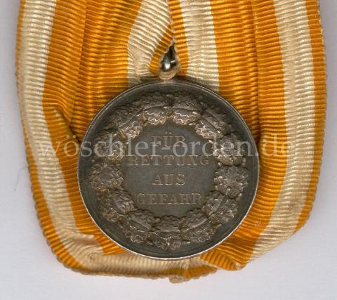 Königreich und Freistaat Preußen, Rettungsmedaille am Bande, verliehen 1833 bis 1918 und 1925 bis 1934, bzw. bis 1837 als „Verdienstehrenzeichen für Rettung aus Gefahr“.