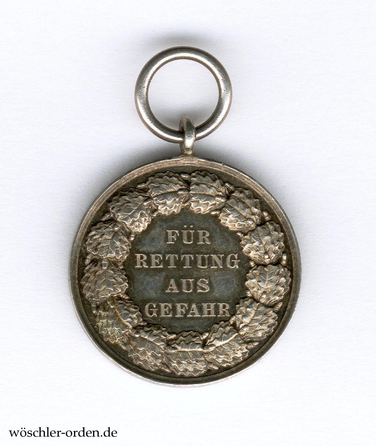 Königreich und Freistaat Preußen, Rettungsmedaille am Bande, verliehen 1833 bis 1918 und 1925 bis 1934, bzw. bis 1837 als „Verdienstehrenzeichen für Rettung aus Gefahr“.