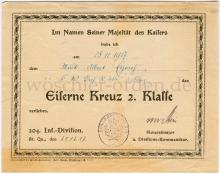 Preußen, Eisernes Kreuz 1914 II. Klasse, Besitzzeugnis |
