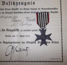 Preußen, Verdienstkreuz für Kriegshilfe, mit Besitzzeugnis |