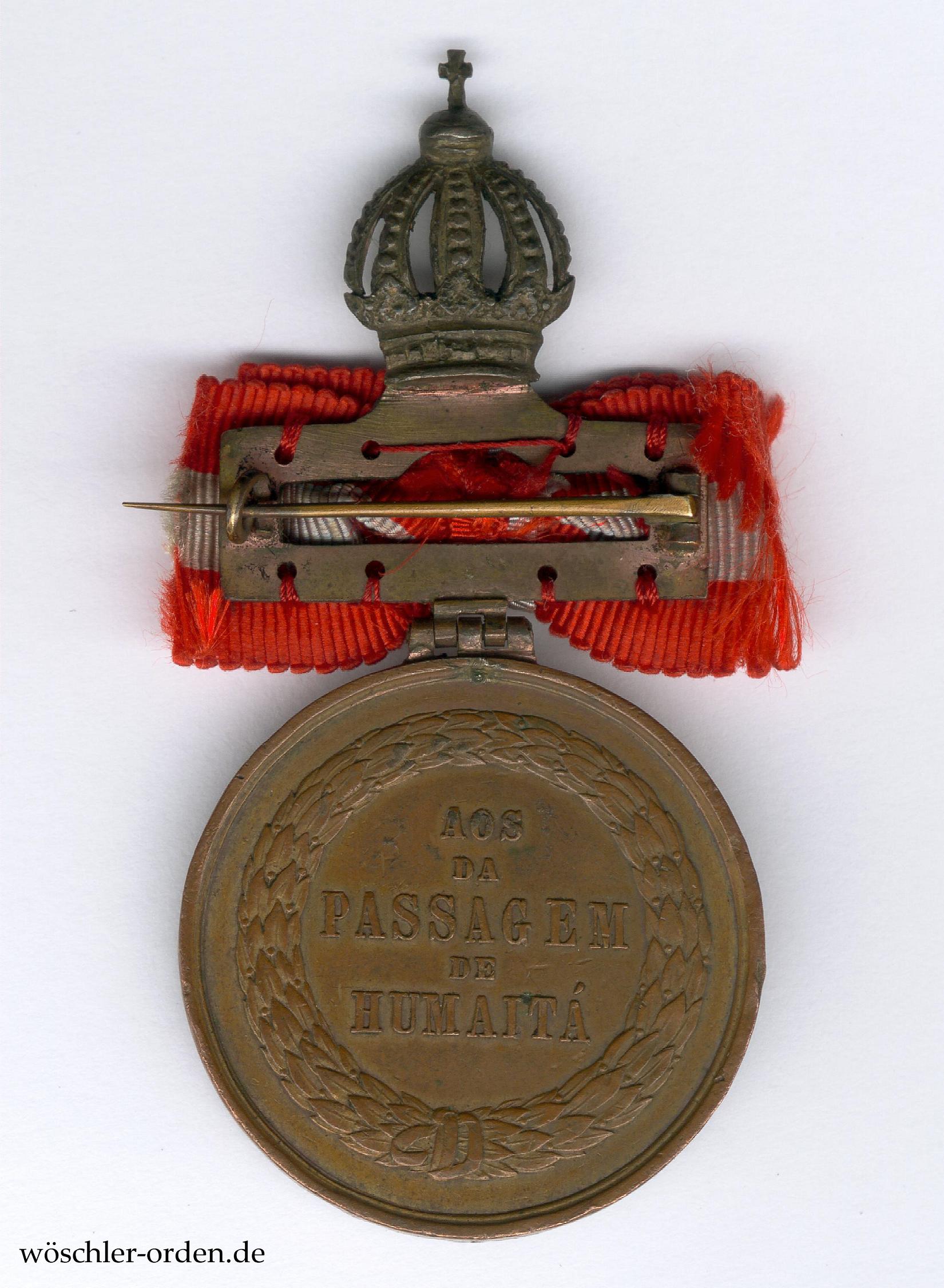 Die Medaille für die Passage von Humaitá wurde am 14. März 1868 in drei Stufen – Gold, Silber und Bronze – für die Besatzungen der sechs Schiffe, die am 19. Februar 1868 die Paraguayische Verteidigung durchbrachen und damit die Festung von der Versorgung abschnitten, gestiftet. Die Operation, die eine der tödlichsten in der südamerikanischen Kriegsgeschichte war, gilt als Höhe- oder Wendepunkt des Paraguayischen Krieges. Nachdem die Festung nicht nur vom Land aus vollständig durch alliierte Truppen belagert, sondern auch vom Wasser aus blockiert wurde, konnte sie am 25. Juli 1868 eingenommen werden.