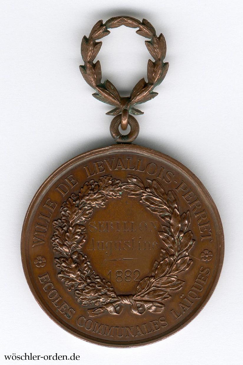 (Dritte) Französische Republik, Levallois-Perret, Bronzene Schulprämienmedaille der Laizistischen Kommunal-Schule.