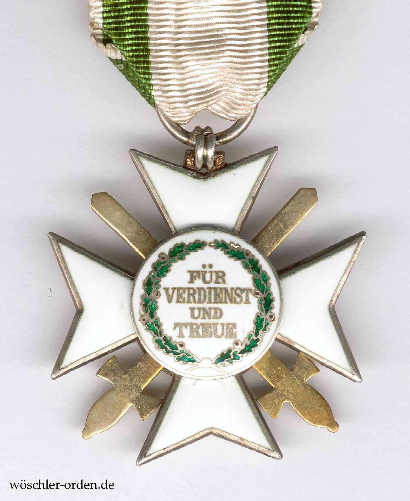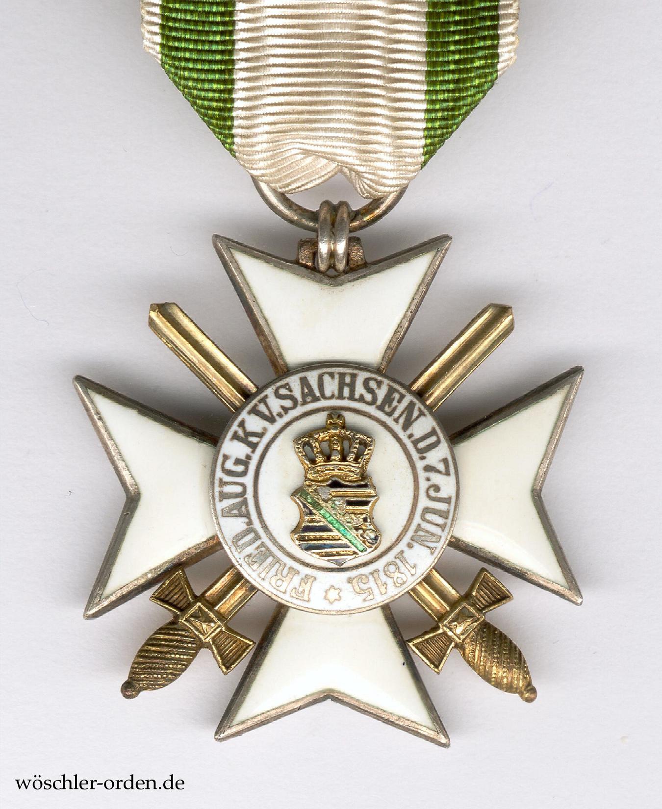 Der am 7. Juni 1815 von König Friedrich August I. als „Zivilverdienstorden“ in ursprünglich drei Klassen gestiftete Orden wurde 1849 in „Verdienstorden“ umbenannt. Anlässlich des Krieges von 1866 wurden für alle Klassen die Schwerter für Verdienst im Krieg sowie 1870 auch – nach preußischem Vorbild – die Schwerter am Ring eingeführt. Ab 1891 wird das Wappen des Vorderseiten-Medaillons nicht mehr in Emaillemalerei dargestellt, sondern aus Metall gefertigt. Der Orden erlosch mit dem Ende der Monarchie im November 1918. Für das Ritterkreuz II. Klasse mit Schwertern weist Oswald insgesamt 760 Verleihungen nach, fast ausschließlich für den Weltkrieg, davon 568 an Inländer sowie 192 an Ausländer, also Nicht-Sachsen. Diese Zahlen scheinen jedoch bei weitem nicht vollständig zu sein.